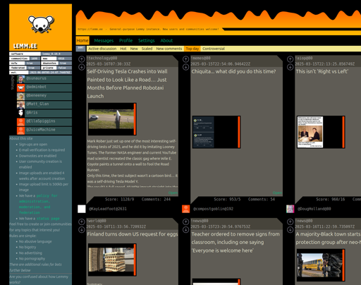 Still with the spirit of this as you mention in another comment, would love to see more experimental and strange frontends. It’d be fun to see more of the different Lemmy instances/sites with unique looks to distinguish themselves.