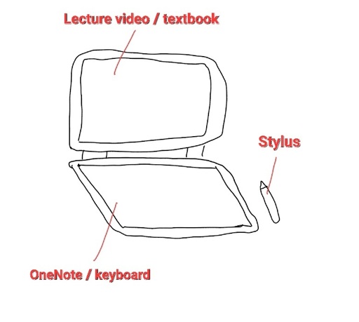 I’d look to see if your tablet could drive a USB-C monitor for the video/textbook screen. You can pick up pretty good 14” ones from HP and Dell for like $130.