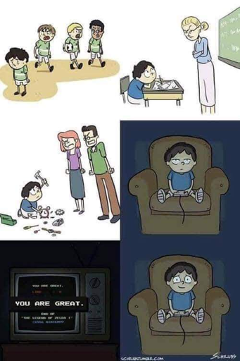 video games tell you you did a good job and don’t complain about how messy your approach was or that you could’ve been faster if only you applied yourself