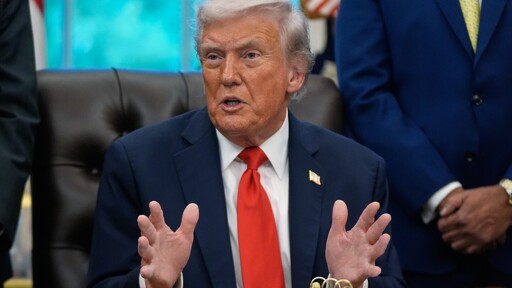 President Donald Trump said Tuesday that the federal government owes him “a lot of money” for prior Justice Department investigations into his actions and insisted he would have the ultimate say on any payout because any decision will “have to go across my desk.”