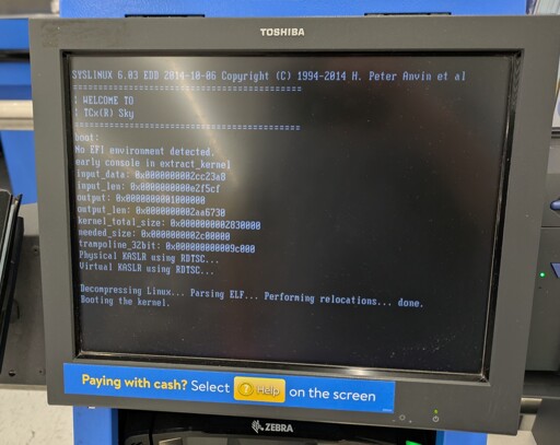 skiguy0123@lemmy.ca to Linux@lemmy.ml · 1 month agothe self checkout machines at Walmart need a reboot. syslinux 6.03lemmy.caimagemessage-square28linkfedilinkarrow-up1248