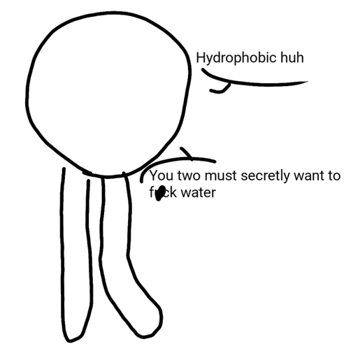 The meme is crudely depicting a phospholipid, one of the molecules that’s part of cell membranes. Phospholipids can be said to have two parts: the hydrophilic “head” and the hydrophobic “tail”.