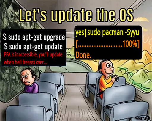 Been using Arch since 2019, that has never happened to me. Apparently it’s all about the device behind the keyboard, not about pacman. 🤣