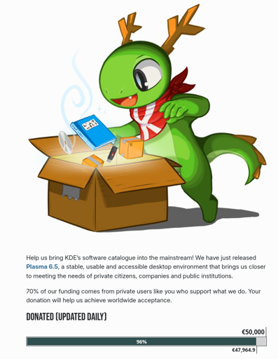cm0002@lemmings.world to Linux@programming.dev · 11 days agoKDE is raising money. We are almost there.plus-squarelemmy.mlimagemessage-square0linkfedilinkarrow-up183