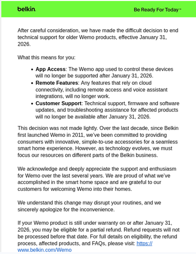 “Be Ready for Today” They’re so supportive and enthusiastic, and because of this they’re killing off most of (maybe all?) of their WeMo line: