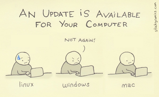 Linux update is more like… “uh oh, please don’t break anything, I just got my graphics drivers working last week.”