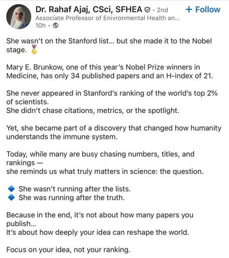 Sure, not a bad view and I don’t know much about Brunkow and how she works, to be clear… but: you do need all these things in order to get academic funding so you can work on your ideas. Which I am not saying is a great system, it isn’t, but I don’t think it is easy to say these days to academic reseachers, especially early career ones, to not care too much about publications.