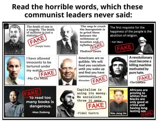 The goal is to debunk verifiable lies fed to you by the West. The post makes no mention of how good or evil they were, only that they definitely did not say these very specific evil things. If it happens to cause you to reconsider your conclusion that these people are evil, a conclusion also fed to you by the same Western propaganda, that’s your business.